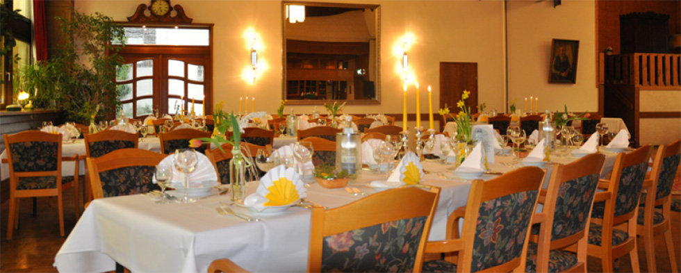 In unserem gemütlichen Restaurant finden Sie zudem einen passenden Ort für private oder geschäftliche Feierlichkeiten. Unsere Räume sind für bis zu 160 Personen ausgelegt. Hierbei können Sie auch unseren Festsaal buchen, der einen direkten Zugang zum idyllischen Biergarten gewährt.