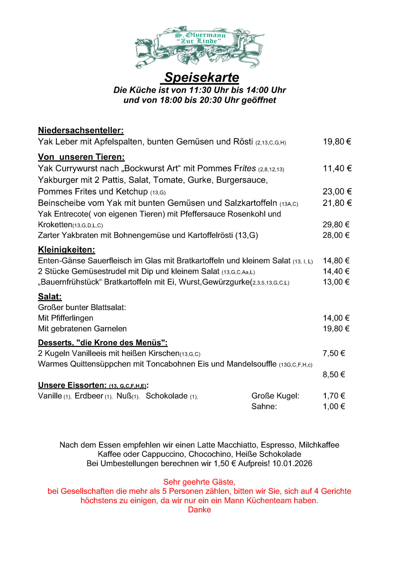 Auf Ihren Besuch in unserem Restaurant "Zur Linde" freuen wir uns!