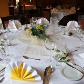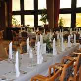 Unsere liebevoll eingerichteten Räume bieten Platz für Festlichkeiten von bis zu 160 Personen. Wie Ihr Festsaal aussehen kann, können Sie hier sehen: